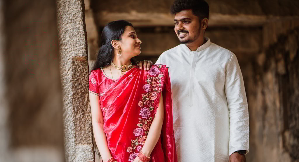 Lighting plays a crucial role in wedding portraits, especially in Indian weddings. The best natural light conditions include: Early morning light for calm, soft, and intimate portraits Golden hour before sunset for warm, cinematic frames Open shade or window light for mid-day portraits A professional wedding photographer plans portrait sessions around light availability rather than forcing portraits into unsuitable time slots, ensuring natural and flattering results.